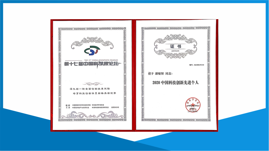 董事長(cháng)潘敏智榮獲2020年中國科技創(chuàng )新先進(jìn)個(gè)人 -