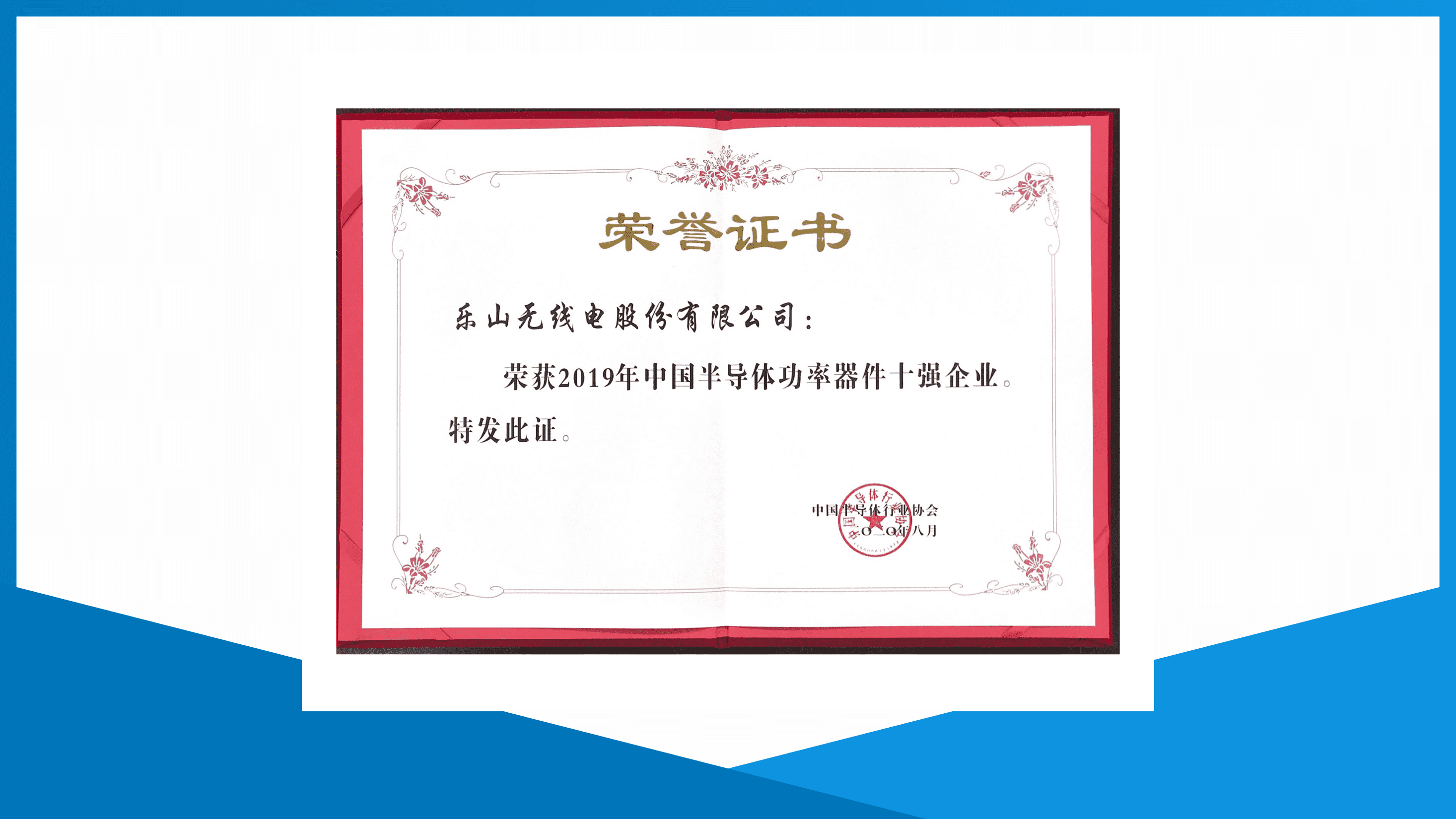 公司榮獲2019年中國半導體功率器件十強企業(yè) -